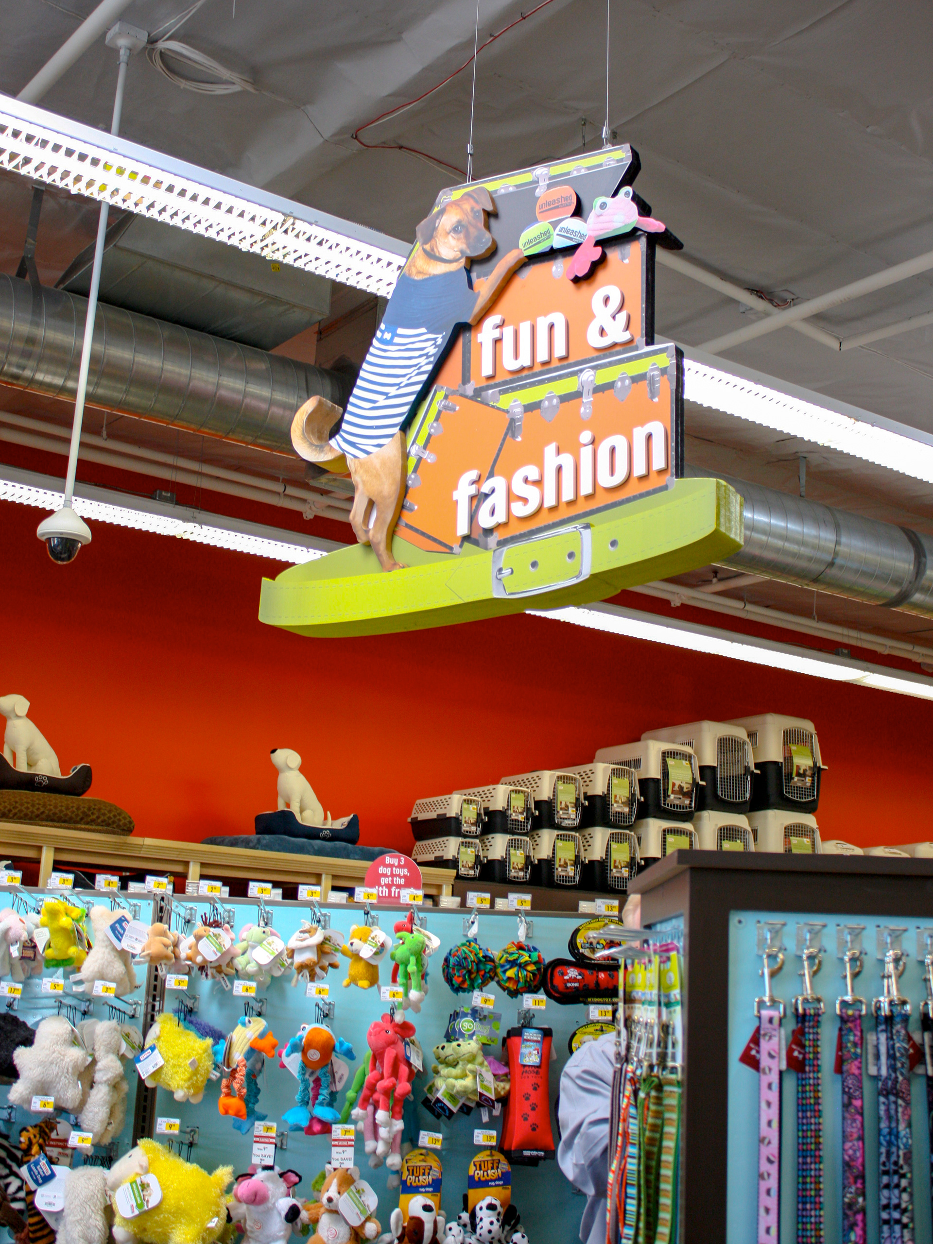 I photographed my dog, Elvis, for new wayfinding signage for Unleashed by Petco's new store prototype. You can see him hanging in the Fun & Fashion signage down below.